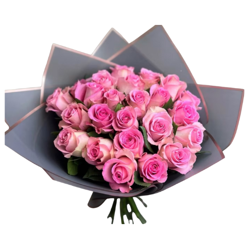 Tres docenas de rosas rosadas “Swet Unique” envueltas en papel.